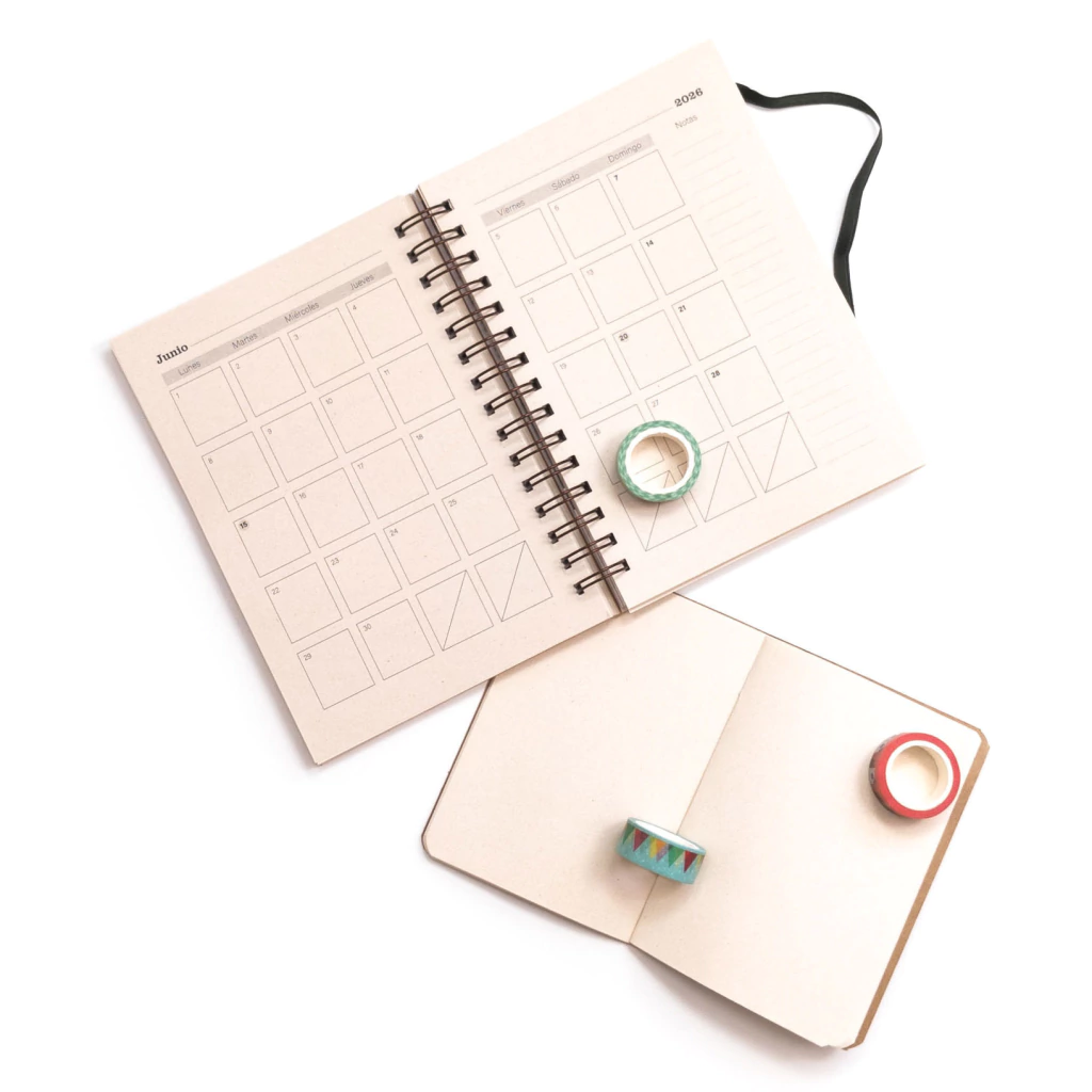 💛 Por dentro: semana a la vista, calendario 2026/2027, planificadores, espacio para tus ideas, hábitos, gastos, stickers a color ¡y hasta tu año en moods diarios!