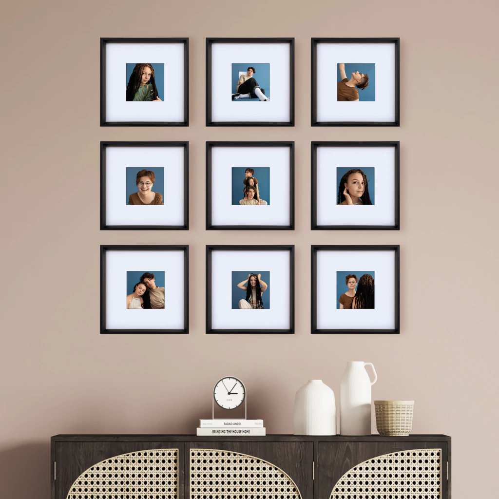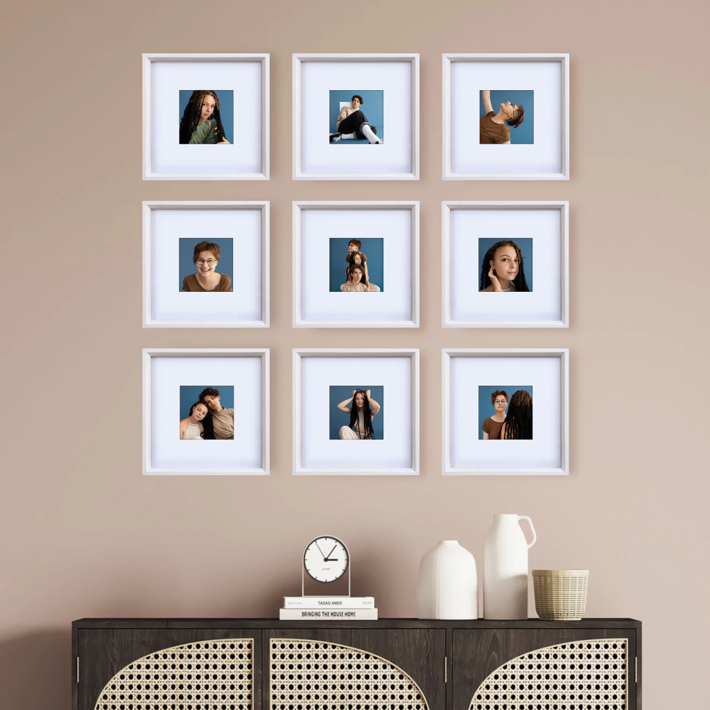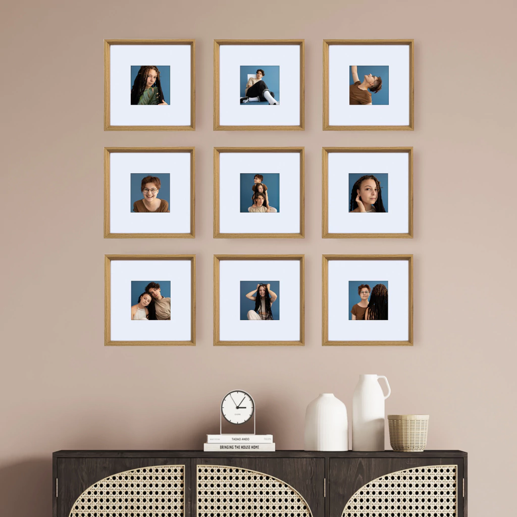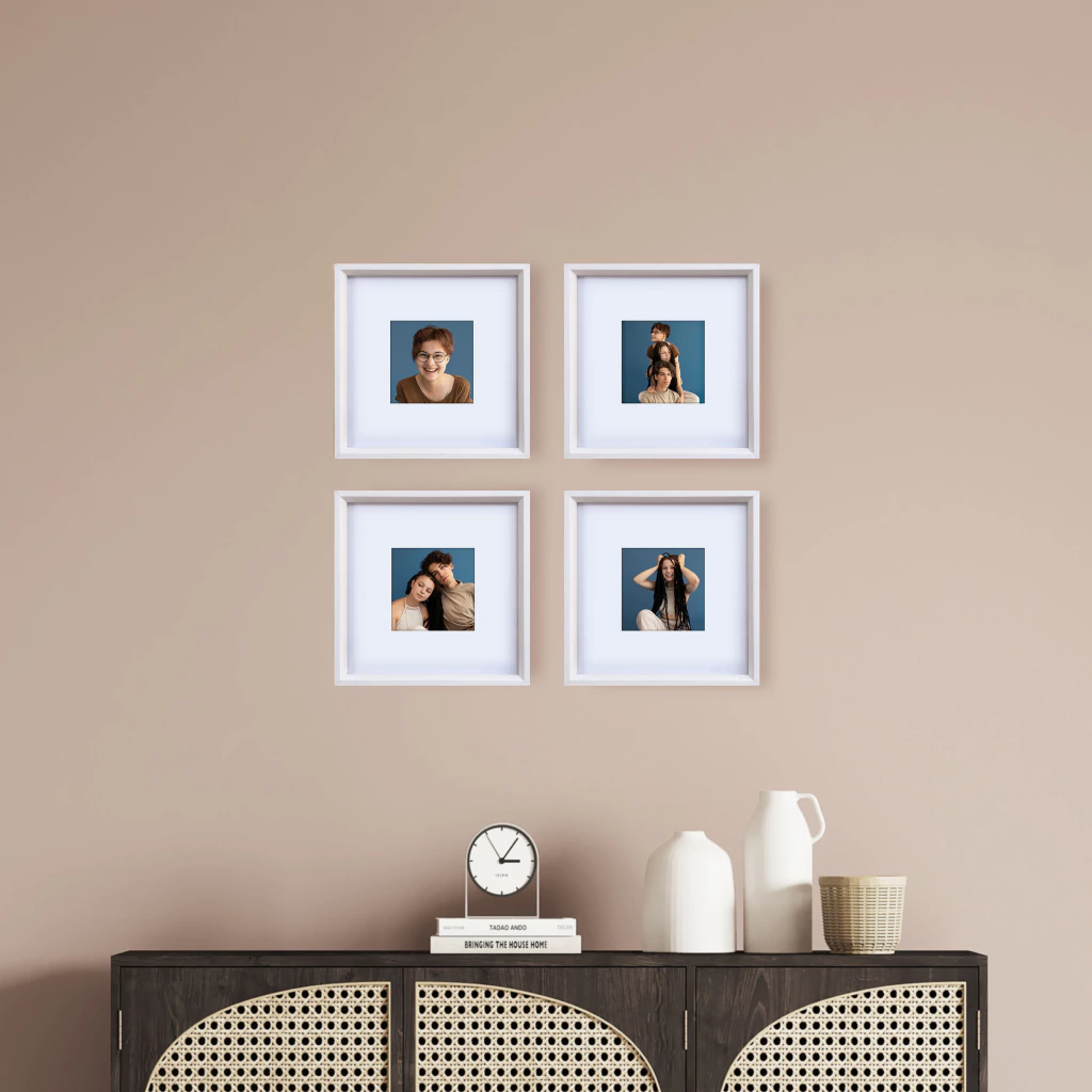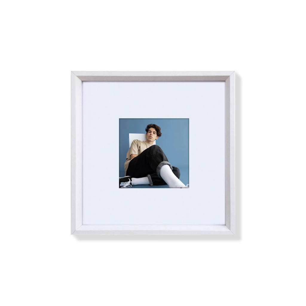 Marco de madera con paspartú y vidrio con foto 10x10cm impresa en papel fotográfico.